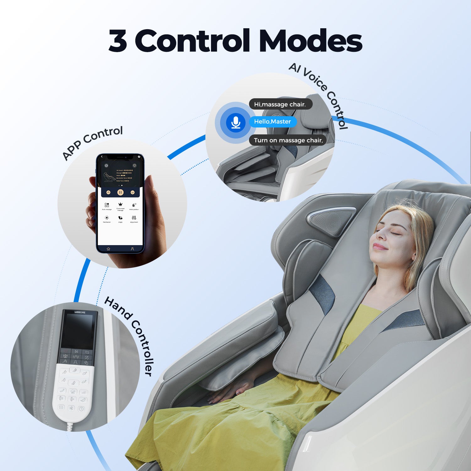 Use the sleek remote for one-touch adjustments, activate AI voice commands to control your massage hands-free, or pair with the smart mobile app to customize every setting from your phone. Whether you're sinking into a deep massage or multitasking at home, you're always in control—with just a tap or a word.